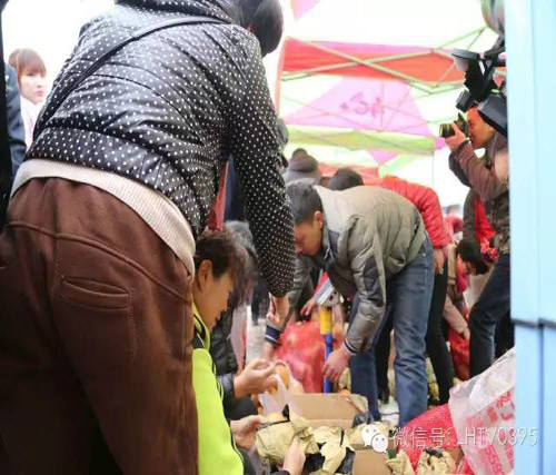 果農(nóng)胡亞峰:今天帶來了一千多斤梨,現(xiàn)在馬上就賣完了,真是要感謝這個(gè)愛心大集,平時(shí)都不好賣,今天一個(gè)多小時(shí)就賣出去了一千多斤梨,特別感謝。