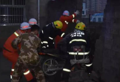 救援官兵趕到后發(fā)現(xiàn),事發(fā)地點位于馮莊村兩棟樓之間的一堵用磚塊壘成的擋墻上,此時擋墻已被撞開一個口子。據(jù)知情人介紹,一名男子連人帶車都被埋壓在倒塌的墻體磚塊中,目前也不知道是生是死。