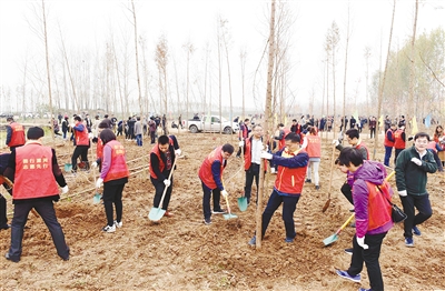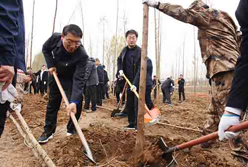 劉尚進、李亦博、李思杰、楊驍、蔣志安、高喜東、周新鶴、張宏進、辛偉、陳平、周學功、栗社臣、余偉、呂娜、徐匯川、閆天常、胡新峰、宗萬志、田冠亭及市中級人民法院院長陳松林、市人民檢察院檢察長陳連東與市直及駐漯各單位主要負責人,市教育、衛(wèi)生、工商、公安、青年志愿者等社會各界代表600余人,來到沙河國家濕地公園合理利用區(qū)內(nèi)參加義務(wù)植樹活動。植樹活動現(xiàn)場一派熱火朝天的景象,有的移苗扶苗,有的揮鍬鏟土,有的踩土壓實,有的拎桶澆水,不大一會兒就植下一片新綠。