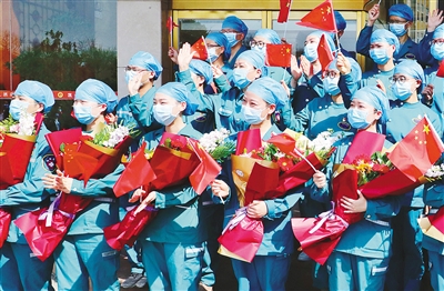 市委書記蒿慧杰在歡迎儀式上動情地說,鞭敲金蹬響,齊唱凱歌還。聽到白衣戰(zhàn)士們高唱“五星紅旗迎風(fēng)飄揚,勝利歌聲多么嘹亮”,我們更加深切地體會到,在抗擊災(zāi)難中黨的偉大、祖國的偉大、人民的偉大。看到抗疫勇士們從最前沿勝利歸來、平安到家,我們和你們的家人一樣,非常高興。我代表市委、市人大、市政府、市政協(xié)和市疫情防控指揮部,向你們以及支持你們奔赴抗疫第一線的家人表示衷心的感謝和崇高的敬意!代表全市人民為你們點贊,歡迎你們回家!