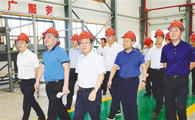 8月7日,市委書(shū)記蒿慧杰一行在武漢美好置業(yè)集團(tuán)江夏區(qū)生產(chǎn)基地考察。記者 王慶建 攝