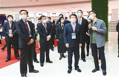 11月1日,市四大班子領(lǐng)導帶領(lǐng)市直相關(guān)部門負責同志察看第十八屆中國(漯河)食品博覽會展館。本報記者 王慶建 攝