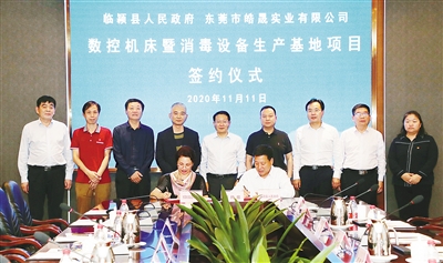11月11日,市委書記蒿慧杰出席臨潁縣人民政府與東莞市皓晟實業(yè)有限公司數(shù)控機床暨消毒設備生產(chǎn)基地項目簽約儀式。記者 王慶建 攝