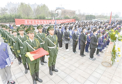 4月2日,我市黨政機關干部、學校師生、駐漯部隊官兵及各界人士,紛紛來到市烈士陵園開展清明祭英烈活動,深切緬懷革命先烈豐功偉績。記者 焦海洋 攝