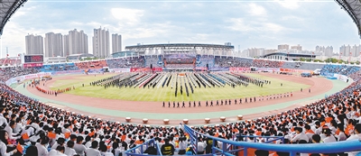 10月17日,市第九屆運(yùn)動(dòng)會(huì)、第七屆職工運(yùn)動(dòng)會(huì)、市直機(jī)關(guān)運(yùn)動(dòng)會(huì)暨全民健身大會(huì)在市體育中心隆重開(kāi)幕。記者 王曉東 攝