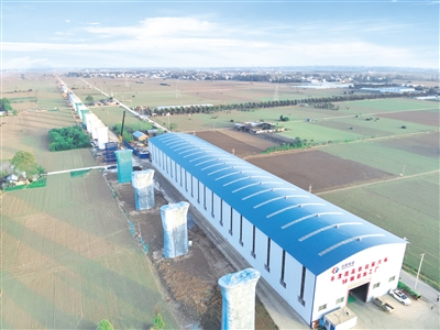 沿著平漯周高鐵線路向東北方向行進(jìn),記者來到了平漯周高鐵中國電建站前六標(biāo)漯河示范區(qū)制梁場。該制梁場位于黑龍?zhí)舵?zhèn)老應(yīng)村,劃分為原材料實(shí)驗(yàn)區(qū)、混凝土拌和區(qū)、鋼筋加工區(qū)、制梁區(qū)、存梁區(qū)等7個(gè)功能區(qū)。