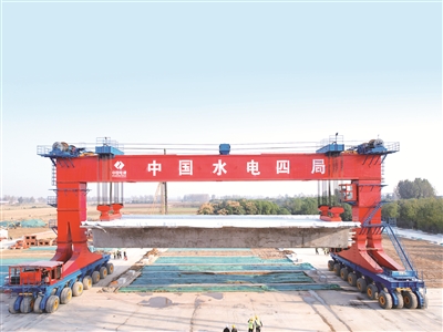 平漯周高鐵中國電建站前六標(biāo)漯河示范區(qū)制梁場內(nèi)移梁機(jī)。張 劍 攝