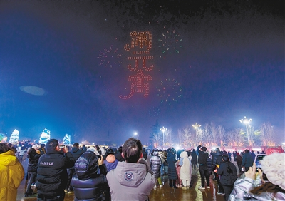 當(dāng)晚,皓月當(dāng)空,沙澧河風(fēng)景區(qū)燈光璀璨、絢麗多姿,紅楓廣場人山人海、熱鬧非凡,處處皆是人間煙火氣。在絢麗的夜景中,人們興高采烈品嘗美食,駐足欣賞精彩的演出,并拍照記錄下這美好的瞬間。記者看到,不少孩子穿上鮮艷的節(jié)日盛裝,手提各式燈籠,在雪地中歡快起舞。 2月24日,正月十五元宵節(jié),沙澧河風(fēng)景區(qū)紅楓廣場,漯河新春元燈會迎來了又一個高潮時刻。數(shù)萬人涌向這里,品嘗美食,觀看精彩非遺節(jié)目展演,欣賞“只有漯河”無人機表演,過了一個熱鬧非凡的節(jié)日。