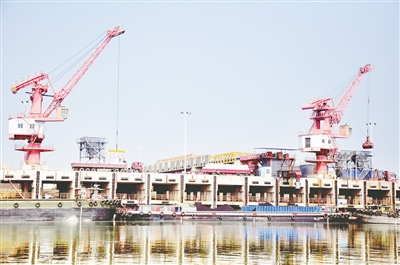 繁忙的漯河港本報記者 齊國霞 攝