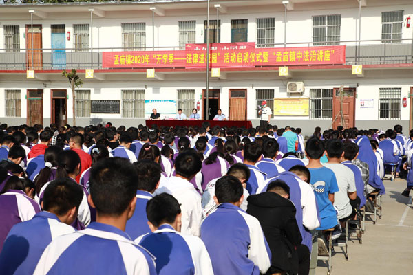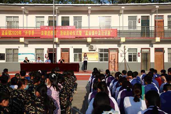 9月17日下午,在孟廟司法所的精心籌劃下,孟廟鎮(zhèn)在鎮(zhèn)初級中學(xué)成功舉行2020年“開學(xué)季—法律進(jìn)校園”活動啟動儀式暨“孟廟鎮(zhèn)中法治講座”。郾城區(qū)教育局副局長趙云峰、郾城區(qū)司法局副局長鮑道進(jìn)、郾城公安分局孟廟派出所負(fù)責(zé)人、孟廟司法所所長出席活動。郾城區(qū)檢察院第三檢察部副部長常雨凝為全校900余名學(xué)生帶來了一場精彩生動的法治講座。