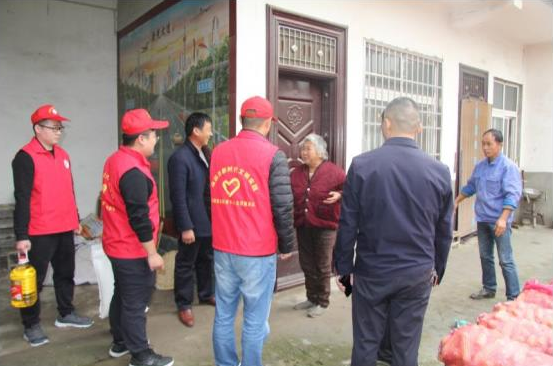 活動中,村支部書記與駐村第一書記楊志等7余名志愿者一起走入幫扶的“親戚”家中,為他們送去大米、面粉、食用油等慰問品。駐村書記楊志為幫扶戶講解我國設立“扶貧日”的主要目的和意義,鼓勵他們堅定貧困戶自立自強、勤勞致富、脫貧退出的信心。