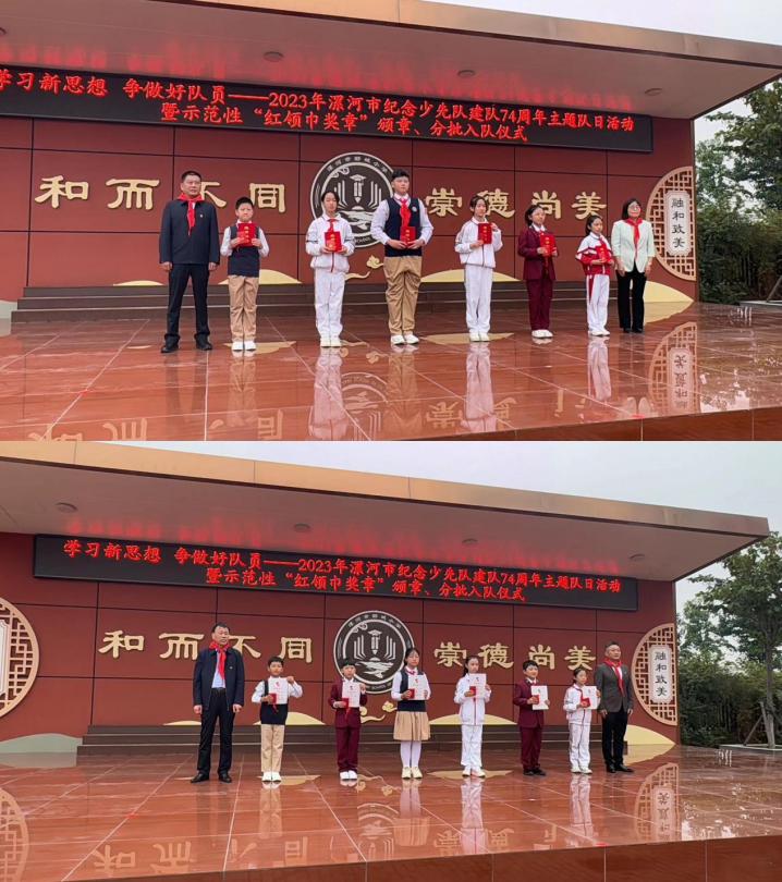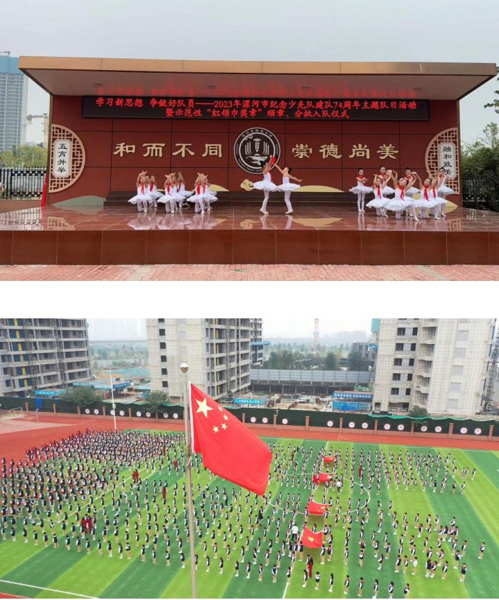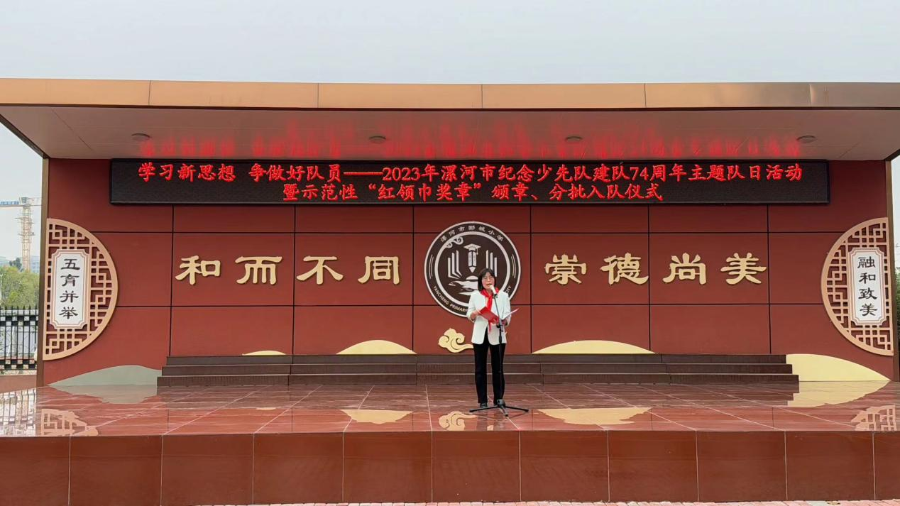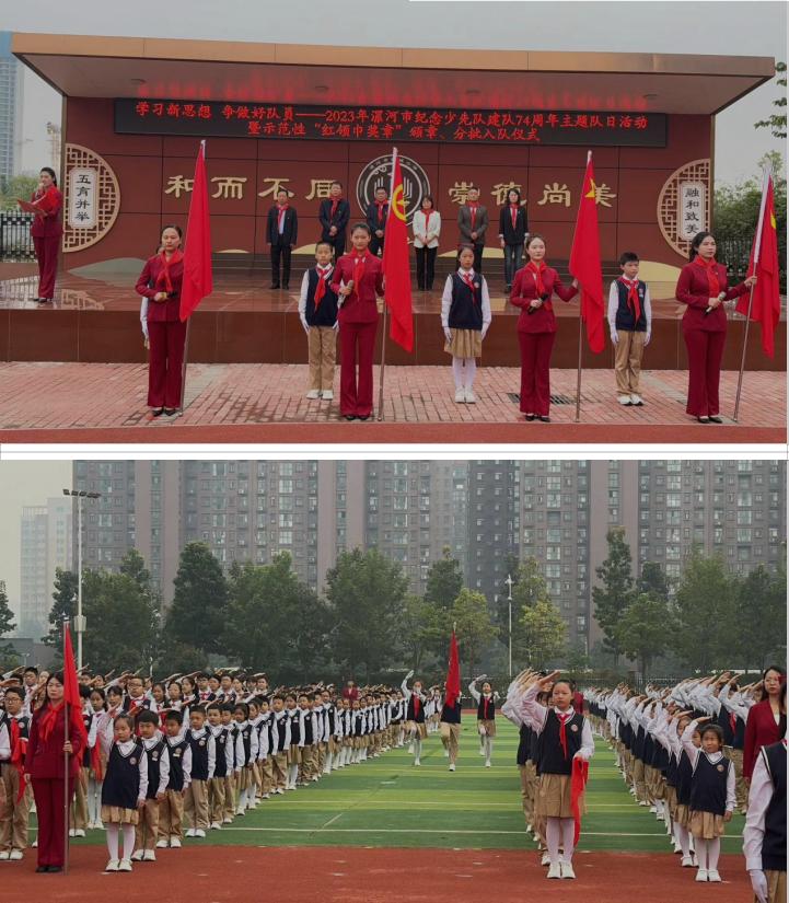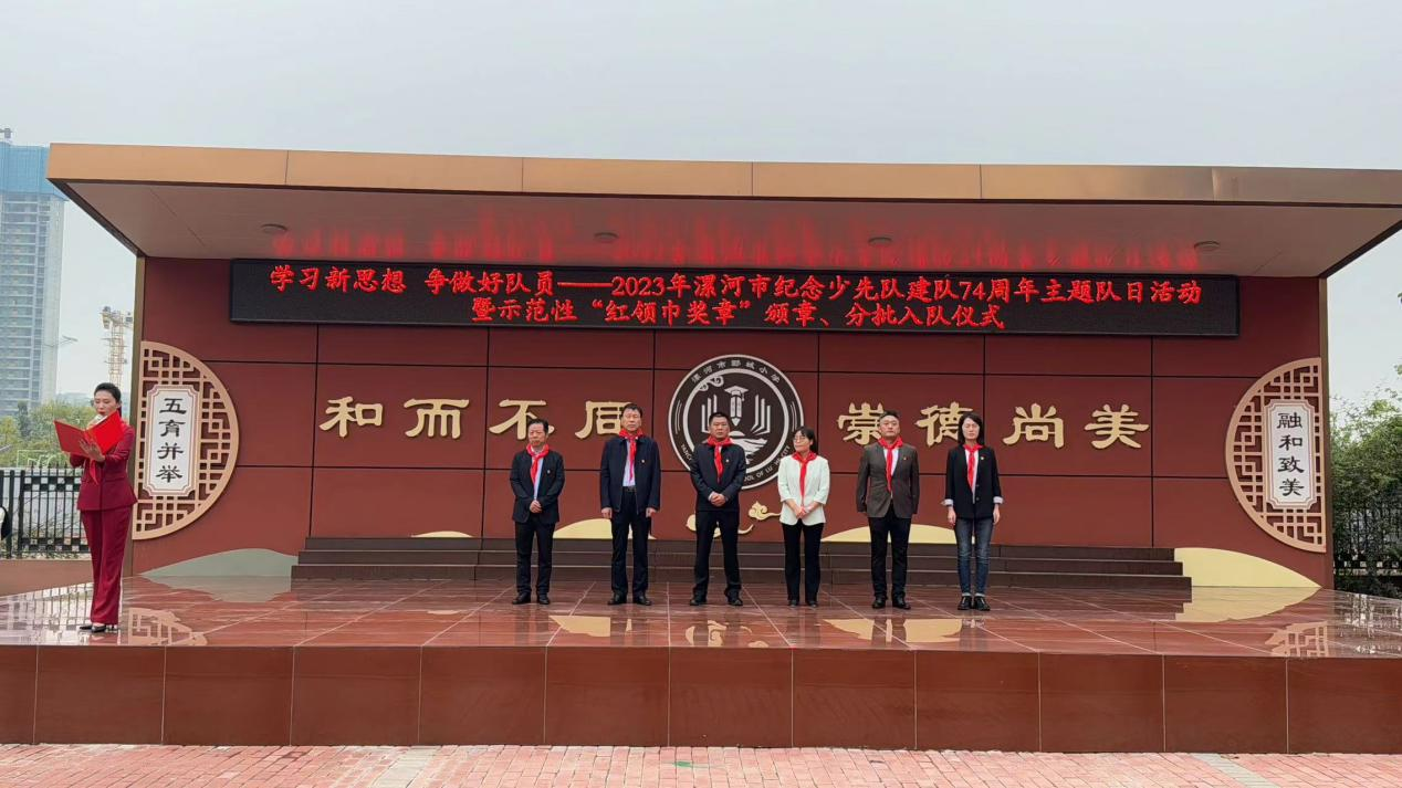 為加強對少年兒童的思想引領(lǐng),激發(fā)少先隊員的光榮感和組織歸屬感,示范推動全市少先隊分批入隊和紅領(lǐng)巾爭章工作,10月12日上午,在第74個中國少年先鋒隊建隊日來臨之際,由共青團漯河市委、漯河市教育局、漯河市少工委主辦,郾城小學(xué)承辦的“學(xué)習(xí)新思想 爭做好隊員”——2023年漯河市紀念少先隊建隊74周年主題隊日活動暨示范性“紅領(lǐng)巾獎?wù)?rdquo;頒章、分批入隊儀式在郾城小學(xué)圓滿舉行。