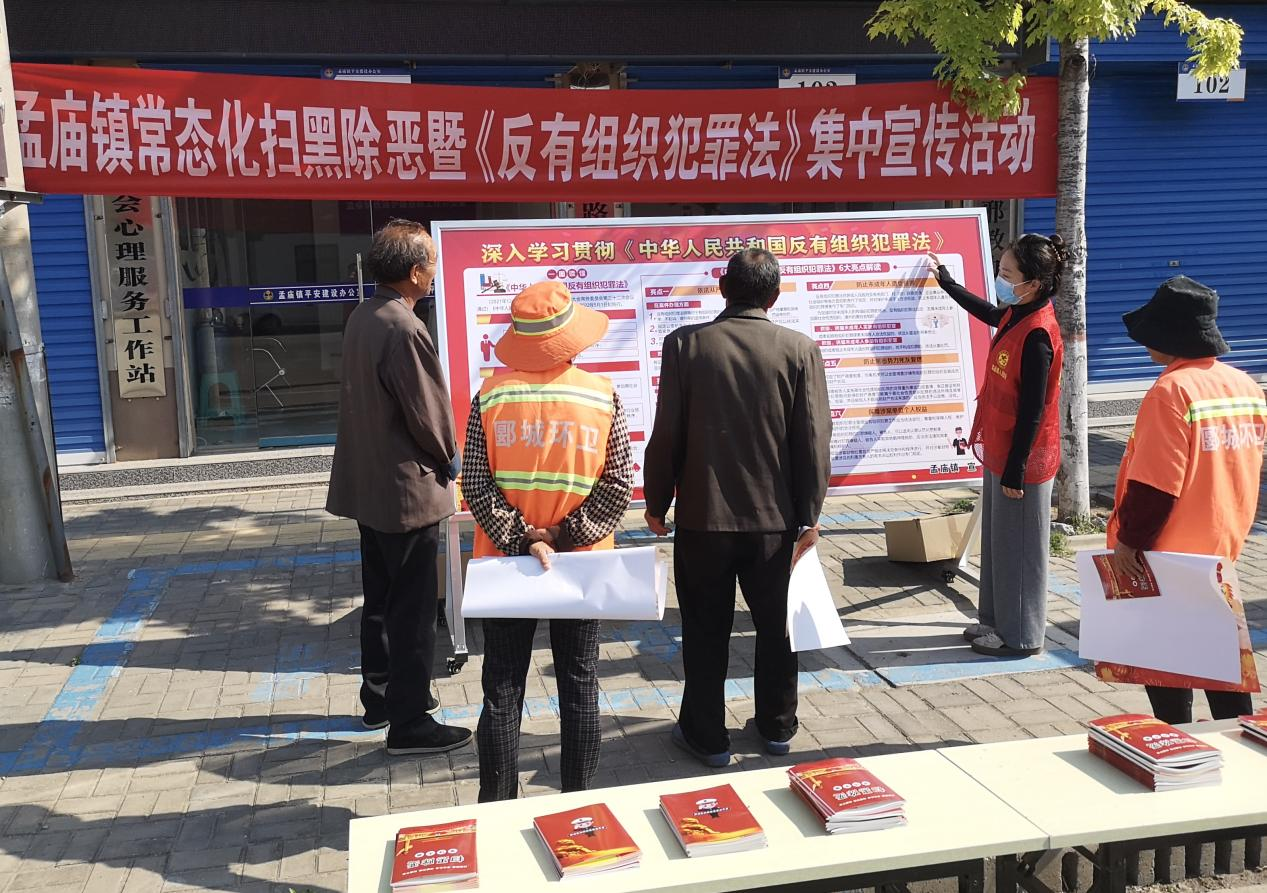 為深入推進(jìn)常態(tài)化掃黑除惡斗爭(zhēng),切實(shí)提升轄區(qū)居民對(duì)常態(tài)化掃黑除惡的知曉率和參與率,營(yíng)造和諧穩(wěn)定的社會(huì)環(huán)境。5月10日,孟廟鎮(zhèn)開展常態(tài)化掃黑除惡暨《反有組織犯罪法》集中宣傳活動(dòng)。