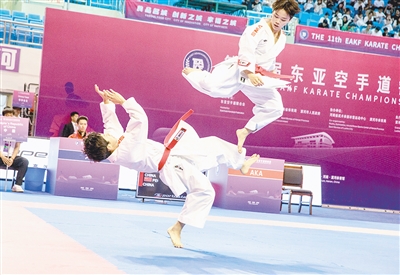 (記者 楊 光)5月10日上午,第十一屆東亞空手道錦標賽在市體育館開幕。來自中國、日本、韓國、朝鮮等7個國家和地區(qū)的179名運動員在這里進行為期兩天的激烈角逐。中國空手道隊派出了61名運動員參賽所有組別的角逐。記者了解到,國家隊中有我市輸送的運動員徐俊博和王雨涵。