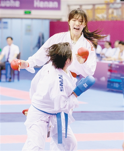 記者了解到,徐俊博今日登場,參加成年組男子個人組手-75kg級和成年組男子團體組手的比賽。徐俊博2002年出生,2014年在漯河市體校訓練空手道,2017年進入河南省空手道隊,去年入選國家隊,并參加了當年的東亞錦標賽。