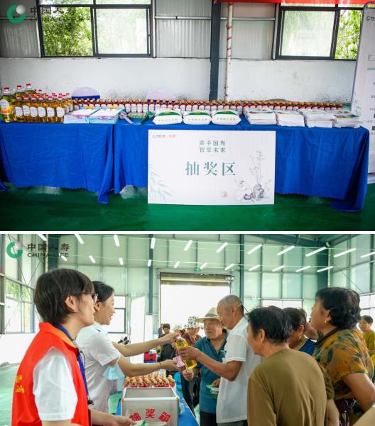 在伴手禮發(fā)放區(qū)和小禮品抽獎(jiǎng)區(qū),河南國壽貼心地為居民準(zhǔn)備了米、油、艾灸錘等生活必需品,以及適宜夏季飲用的養(yǎng)生飲品——酸梅湯、飲用水和小扇子用于祛暑,為鄉(xiāng)親們帶來了實(shí)實(shí)在在的暖心關(guān)懷。