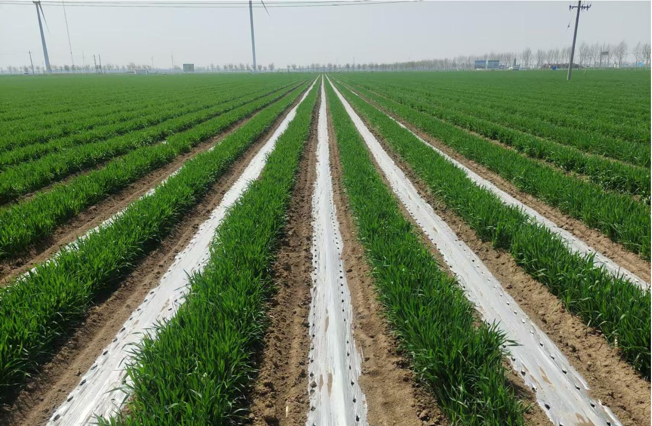 圖為2024年3月20日,河南榮莉萊智慧農(nóng)業(yè)的小麥辣椒套種直播種植剛剛出苗情況。
