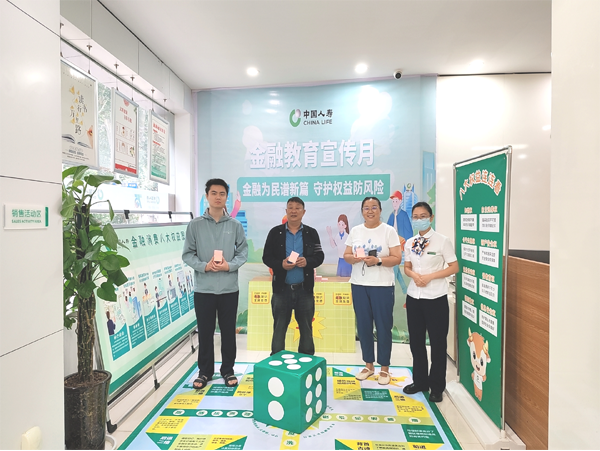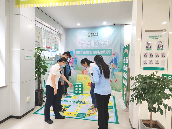 中國人壽壽險漯河分公司黃河路營業(yè)廳內設置了全國統(tǒng)一的“金融知識便利店”,分為活動主海報、禮品區(qū)、金融機場互動版塊、“八大權益”連連看互動板塊,將金融知識融入妙趣橫生的互動游戲之中。金融機場飛行棋游戲互動版塊分為保險專機、反詐專機、反洗錢專機、反非專機,客戶朋友們輪流擲骰子前進或后退,根據(jù)點數(shù)對應位置進行做俯臥撐、背古詩、蹲起、模仿動物叫的游戲和學習金融保險知識等。“八大權益”連連看活動讓客戶朋友們全面地了解消費者八大權益等知識,大家在歡聲笑語中輕松掌握金融防騙、反洗錢、防范非法集資、金融保險知識等。公司對參與互動游戲的客戶朋友們送上了中國人壽專屬的小禮品,讓客戶在參與中收獲知識與喜悅。同時,寓教于樂的游戲項目有效提升了金融知識普及的覆蓋面與接受度,彰顯了中國人壽服務社會的責任擔當。