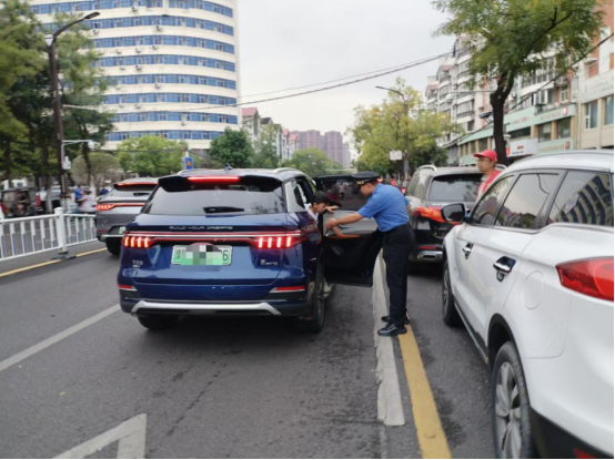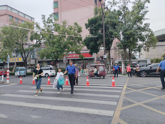 配合學(xué)校營造暢通有序、健康文明的校園周邊環(huán)境。各網(wǎng)格城市管理人員幫助學(xué)生家長提供開車門、搬運行李、護送學(xué)生過馬路等暖心服務(wù)。在做好護航入校的同時,并做好中午、晚間