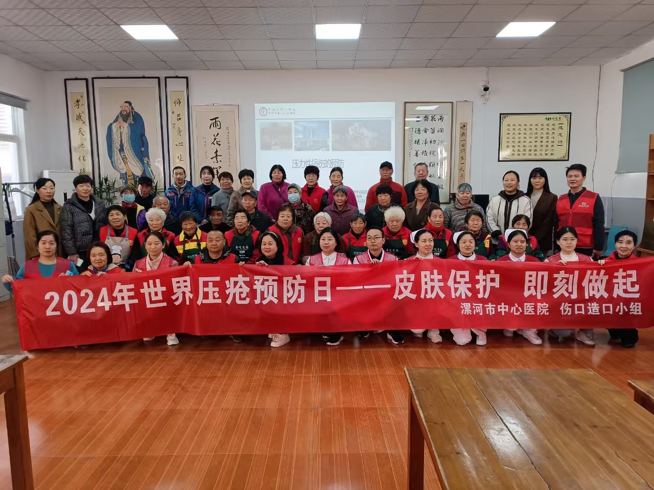 恰逢今日又是“世界壓瘡預(yù)防日”,來自轄區(qū)數(shù)十名居民與志愿者齊聚一堂,聆聽市中心醫(yī)院專家的健康講座。專家們的講解淺顯易懂、耐心細(xì)致,他們站在專業(yè)的角度為群眾講解了如何預(yù)防老年人在睡眠中造成的壓力性損傷和老年糖尿病患者時刻要警惕三種“不起眼的小傷”:一是修剪指甲引起的小傷;二是鞋襪選擇不當(dāng)引起的小傷;三是足底老繭引起的小傷。