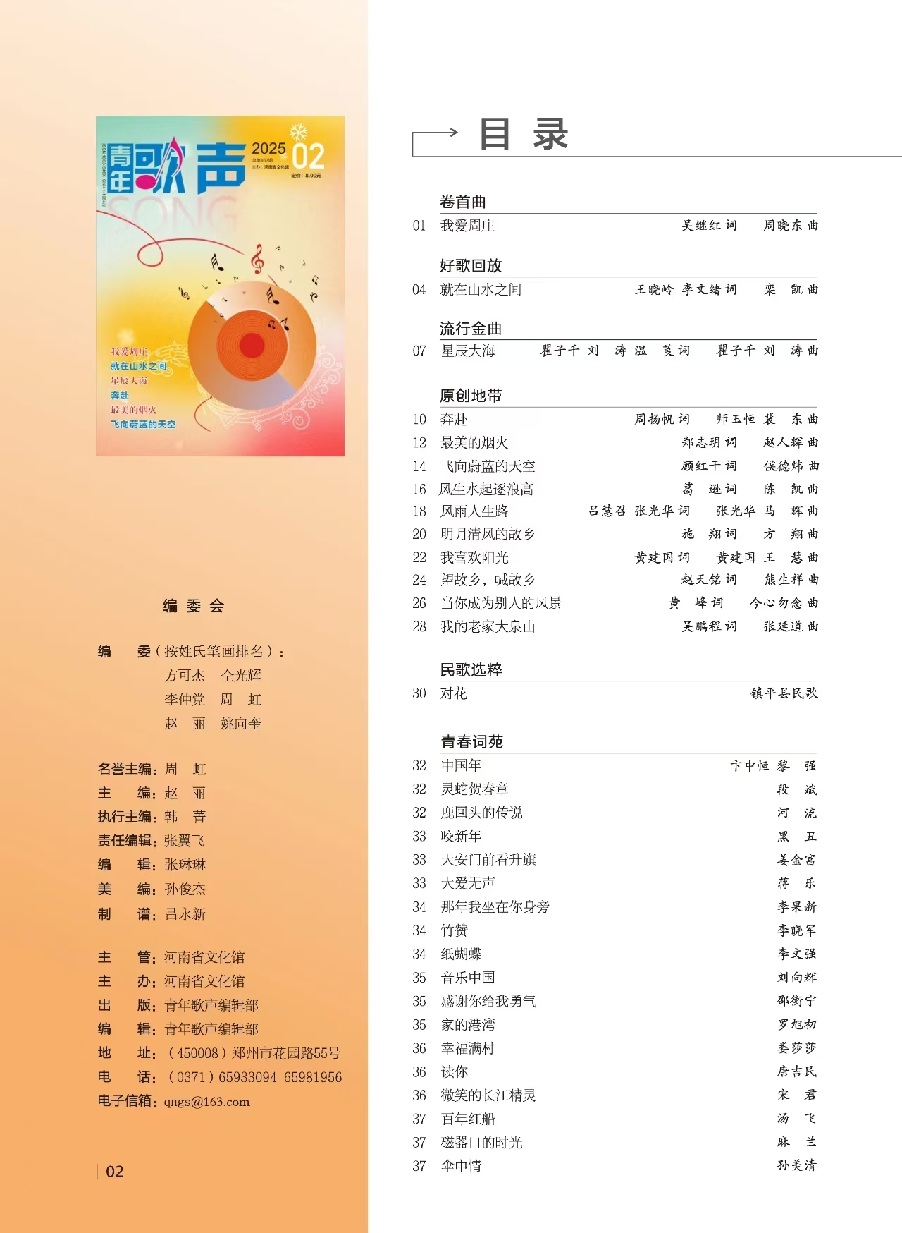 2025年2月5日,音樂雜志《青年歌聲》第二期火熱出爐,由漯河市源匯區(qū)文化館創(chuàng)作的歌曲《我愛周莊》,被選作卷首曲刊載。《青年歌聲》是河南省唯一一本音樂專業(yè)社科類月刊,由國家新聞出版總署批準(zhǔn)備案河南省文化館主管主辦國家正式出版刊物。