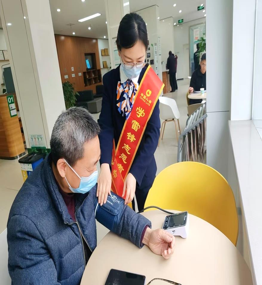 活動當(dāng)天,營業(yè)廳內(nèi)設(shè)置了“雷鋒服務(wù)崗”,身披紅色綬帶的志愿者們熱情滿滿。為客戶提供熱情周到的服務(wù),協(xié)助客戶辦理業(yè)務(wù),耐心協(xié)助填寫各種表格,為客戶端上熱水,并為老年人測量血壓,用溫暖的微笑和貼心的服務(wù),讓客戶在辦理業(yè)務(wù)的同時感受到了濃濃的關(guān)懷。