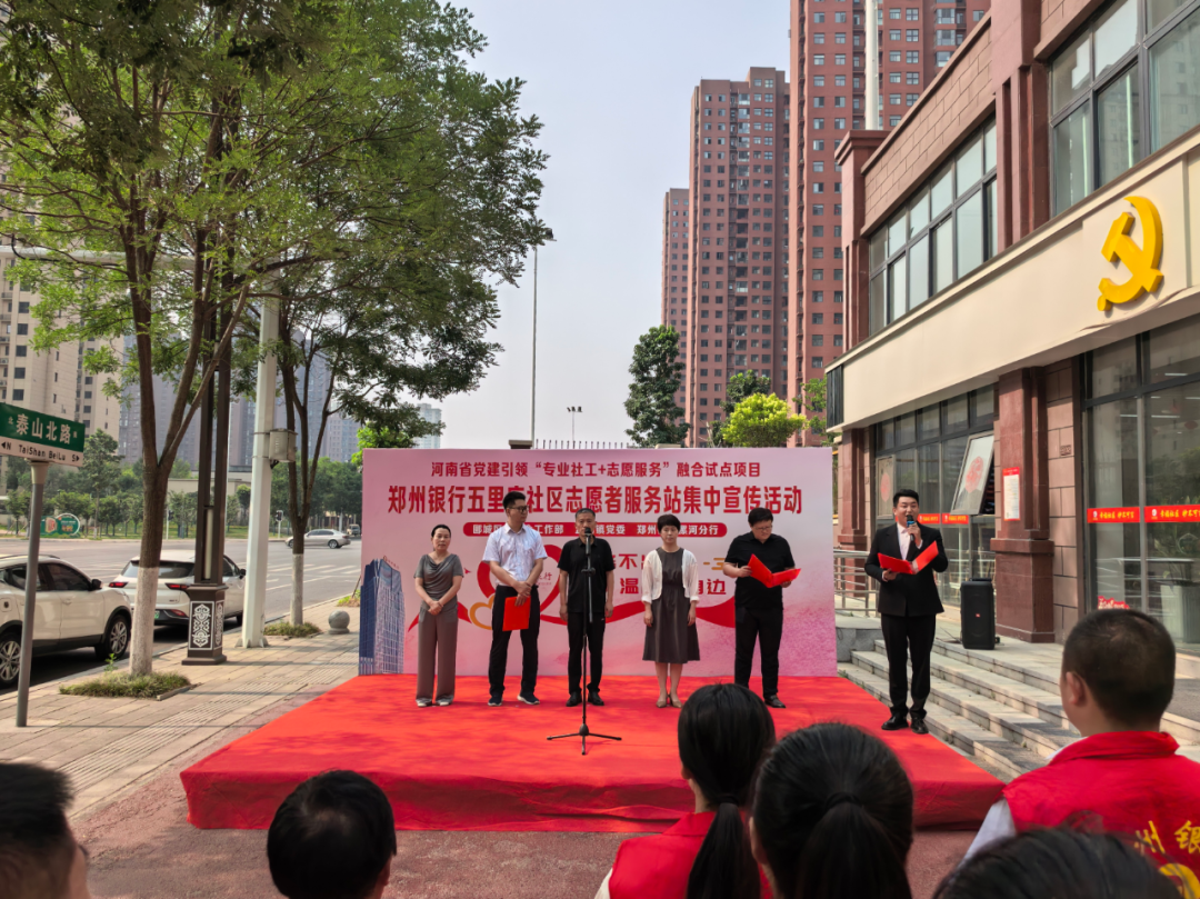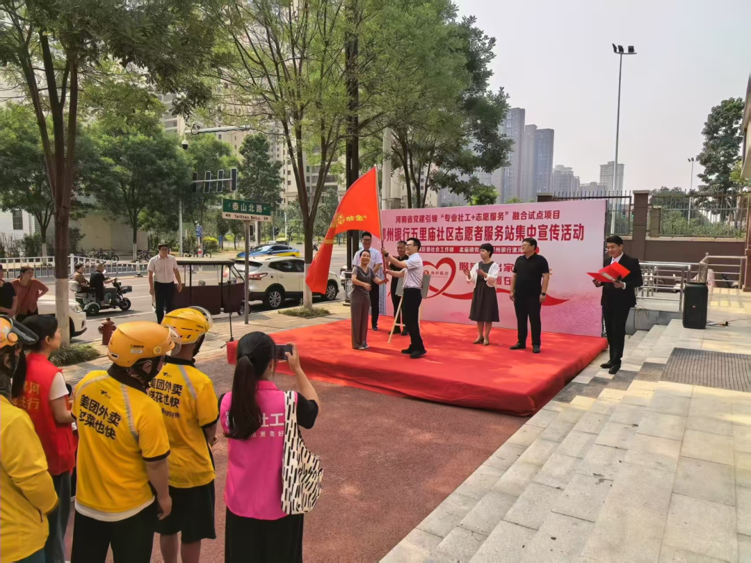 5月29日上午,河南省黨建引領(lǐng)“專業(yè)社工+志愿服務(wù)”融合試點(diǎn)項(xiàng)目——鄭州銀行五里廟社區(qū)志愿服務(wù)站集中宣傳活動(dòng)在孟廟鎮(zhèn)五里廟黨群服務(wù)中心舉行。市委社會(huì)工作部副部長(zhǎng)苗發(fā)勇、郾城區(qū)委常委、政法委書記馮小利等相關(guān)領(lǐng)導(dǎo)與社區(qū)志愿者、新就業(yè)群體代表、居民代表等齊聚一堂,共同見(jiàn)證社區(qū)治理創(chuàng)新實(shí)踐新起點(diǎn)。