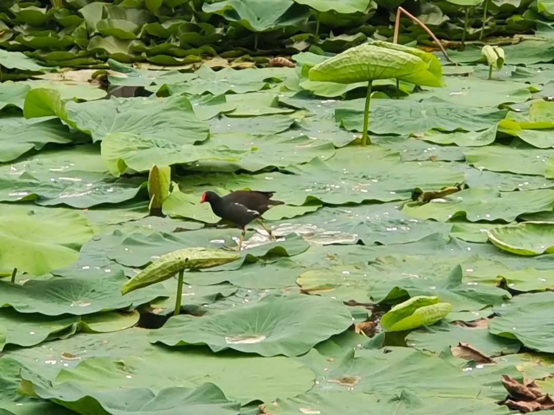 精細(xì)管養(yǎng):織就湖面生態(tài)錦緞。“一日六巡兩清” 是養(yǎng)護(hù)人員養(yǎng)護(hù)日志里的工作準(zhǔn)則。每天9點(diǎn)前,養(yǎng)護(hù)人員就會(huì)駕駛打撈船完成第一次湖面漂浮物清理,到了15點(diǎn)還會(huì)進(jìn)行第二次復(fù)檢,力求讓落葉、雜物打撈干凈。通過優(yōu)化水體循環(huán)系統(tǒng),湖內(nèi)已形成"荷花—微生物—水鳥"的微型生態(tài)鏈:荷花根系固定淤泥、凈化水質(zhì),為魚蝦提供庇護(hù);水草適度生長為鳥類提供天然食物,鳥兒橘紅色腳掌劃開水面的畫面,已成荷塘靈動(dòng)一景。