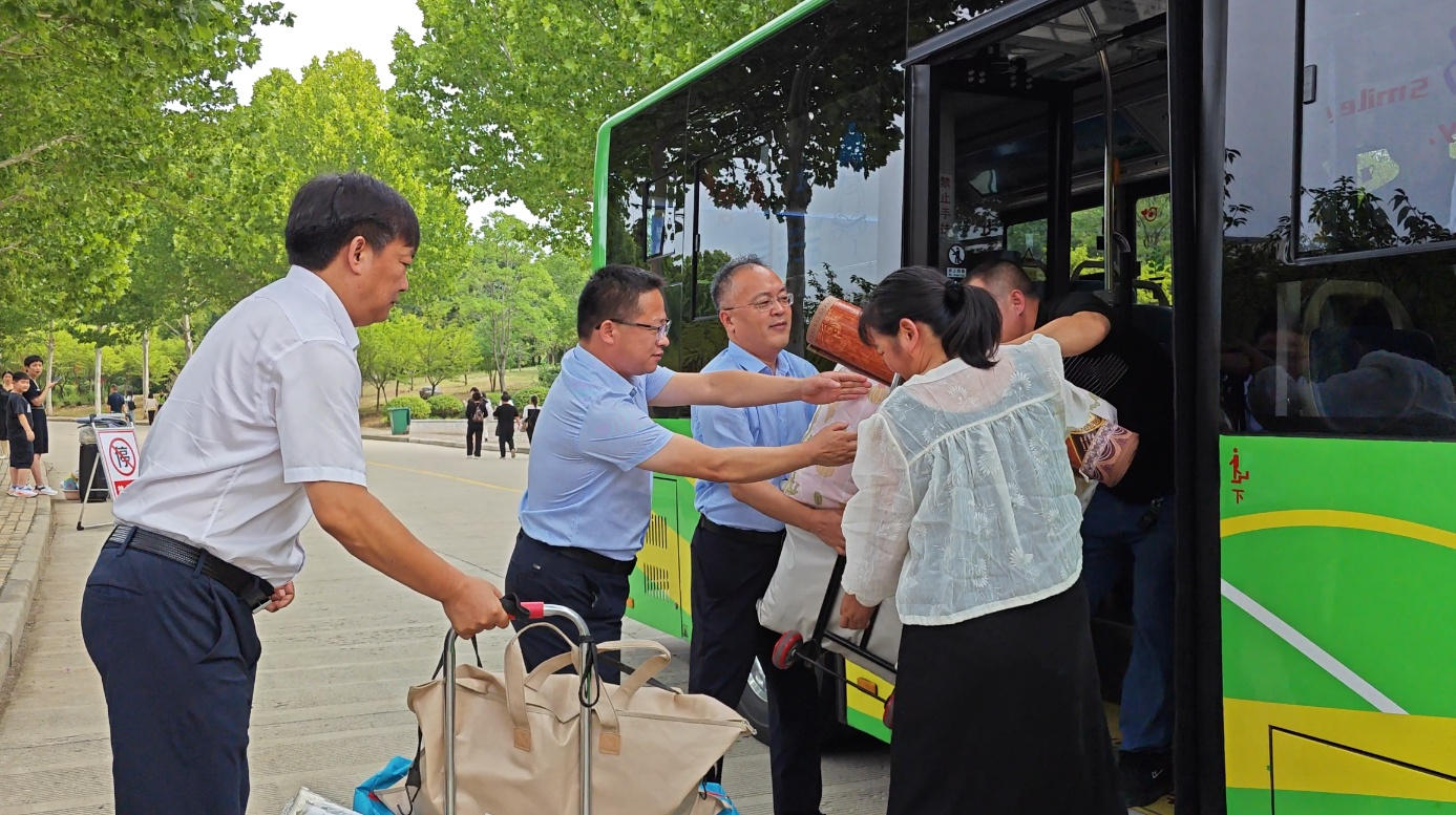 校黨委副書記邊曉峰,副校長馬永超、蘭濤在接站點