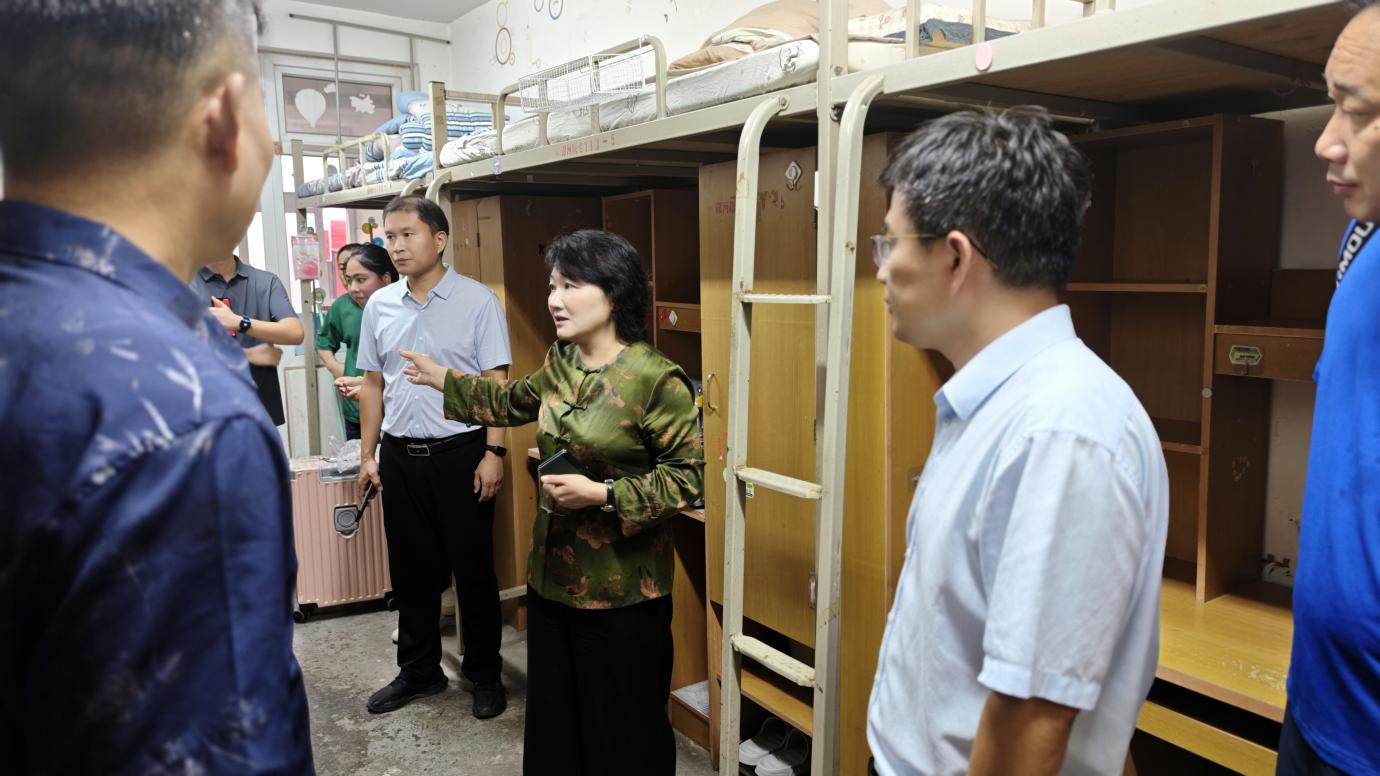 隨后,張祎捷一行走訪了源匯校區(qū)臨床醫(yī)學(xué)院、口腔醫(yī)學(xué)院、護理學(xué)院、藥學(xué)院、中醫(yī)學(xué)院、醫(yī)技學(xué)院迎新點,詳細了解報到情況,仔細詢問新生報到流程,注冊進度和志愿服務(wù)安排。每到一處,她都與新生、家長及工作人員深入交流。在學(xué)生宿舍區(qū),她重點查看了生活服務(wù)保障措施,認真傾聽學(xué)生初入校園的感受,鼓勵他們積極適應(yīng)新環(huán)境、融入大集體,盡快以飽滿的狀態(tài)投入大學(xué)生活,并感謝家長對學(xué)校的信任與托付。此外,張祎捷一行還前往校區(qū)食堂、超市、志愿服務(wù)點,檢查餐飲衛(wèi)生、商品供應(yīng)、志愿服務(wù)等情況,確保新生在校生活需求得到全方位保障。