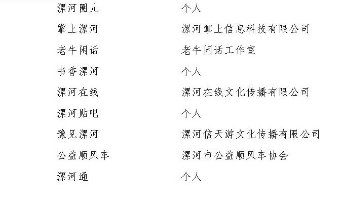3. 漯河市2016年度優(yōu)秀網(wǎng)絡平臺名單