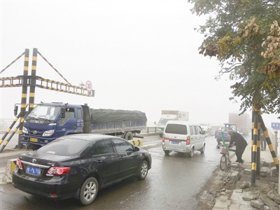 11月29日,記者看到網(wǎng)友“僅此而已”發(fā)的消息后,來(lái)到了107國(guó)道沙河橋看到,在107國(guó)道由南向北方向車輛較多,行駛緩慢。橋西半幅依然限高,而橋東半幅的限高桿已經(jīng)打開(kāi),在東半幅橋面中間,有一些石墩把橋面一分為二,由南向北的車輛走東半側(cè),由北向南的走西半側(cè)。