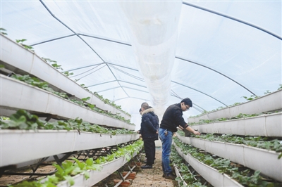 秸稈反應(yīng)堆技術(shù)是源匯區(qū)食品安全監(jiān)督大隊(duì)在精準(zhǔn)扶貧過程中幫助群眾引入的。王新華帶記者進(jìn)入基地的塑料大棚,一入棚,排排立體種植的草莓就呈現(xiàn)眼前。舒展的草莓葉子充滿盈盈綠意,其間怒放著朵朵小白花。與一般的塑料大棚不同的是,草莓上面的棚架上固定有兩條塑料薄膜制成的“長龍”,里面充滿氣體。“長龍”貫穿大棚兩端,“龍身”上扎有一個(gè)一個(gè)的孔。王新華對記者說:“這兩條‘長龍’是送氣筒,里面是落葉經(jīng)秸稈反應(yīng)堆技術(shù)處理后產(chǎn)生的二氧化碳?xì)怏w。”二氧化碳的氣源,是大棚一端的秸稈反應(yīng)堆。正在忙著為秸稈反應(yīng)堆打孔的陳小甫是大劉鎮(zhèn)前陳村村民,經(jīng)過一段時(shí)間的操作,他儼然成了秸稈反應(yīng)堆技術(shù)方面的行家里手。“這一種是‘內(nèi)置秸稈生物反應(yīng)堆’,其實(shí)就是把我們以前焚燒掉的玉米秸稈、樹葉等通過發(fā)酵,使它們轉(zhuǎn)化成蔬菜、瓜果所需要的二氧化碳。發(fā)酵過程中,還能為冬季蔬菜生長提供大量的熱量,促進(jìn)蔬菜生長。使用秸稈生物反應(yīng)堆技術(shù)后,可以不施化肥、不打農(nóng)藥,生產(chǎn)出來的瓜果蔬菜是典型的有機(jī)綠色食品。”