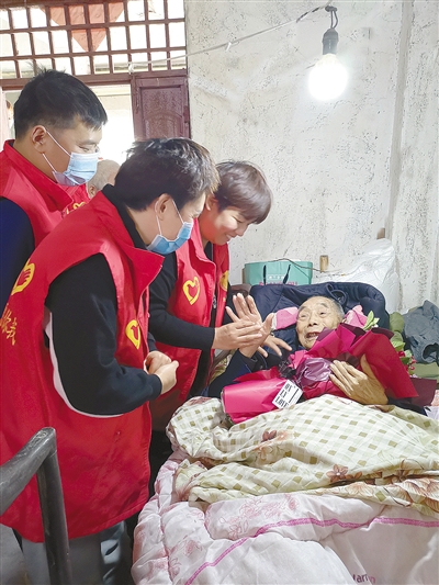 志愿者為百歲老人慶生