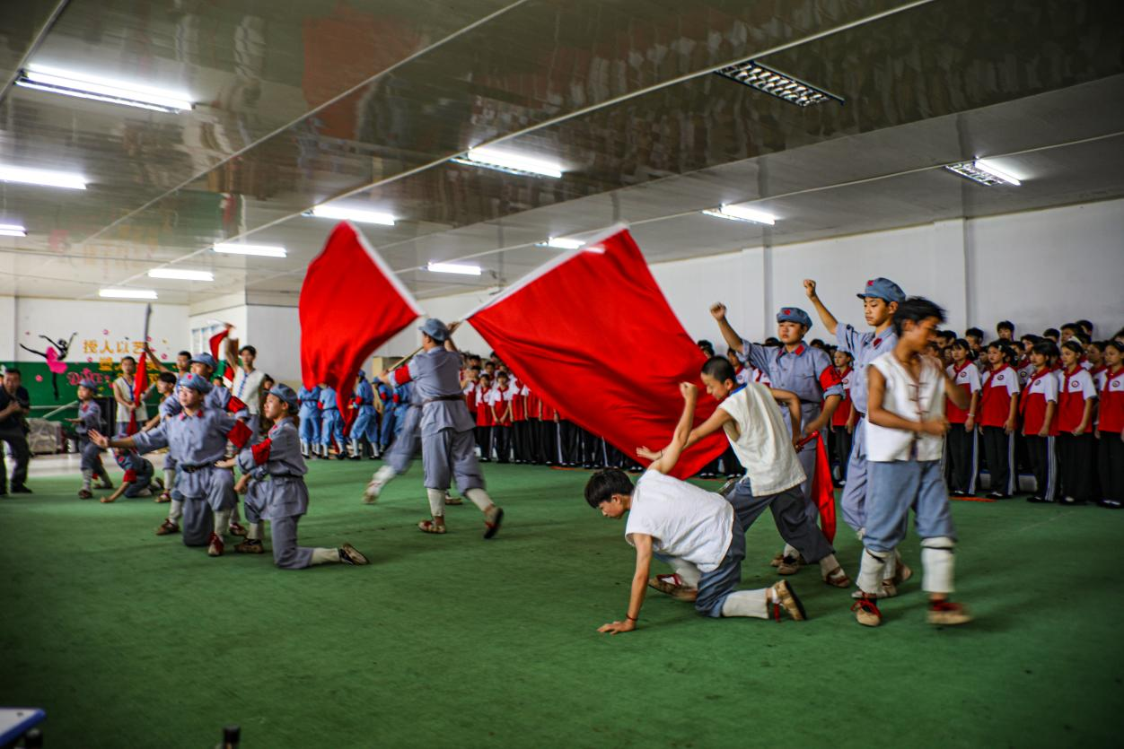 鏡頭轉向熱火朝天的“七一”節(jié)目排練現(xiàn)場?!都t燈記》中“鐵梅”的堅毅,《紅色娘子軍》的颯爽英姿,《焦裕祿》的深情感人……小演員們雖臉龐稚嫩,唱念做打卻已頗具風骨。排練廳回蕩著豫劇的鏗鏘韻律,攝影家們的鏡頭在光影流轉間,定格下傳統(tǒng)藝術在年輕一代身上煥發(fā)的勃勃生機。這些由孩子們傾情演繹的紅色經(jīng)典與優(yōu)秀傳統(tǒng)劇目,正是這所非遺傳習所教學成果的生動注腳——建校以來,五次晉京獻禮中南海,多次參加央視及省臺春晚,先后榮獲中國“小梅花”金獎56枚,河南省“小梅花”金獎83枚、銀獎31枚,累累碩果印證著薪火相傳的力量。