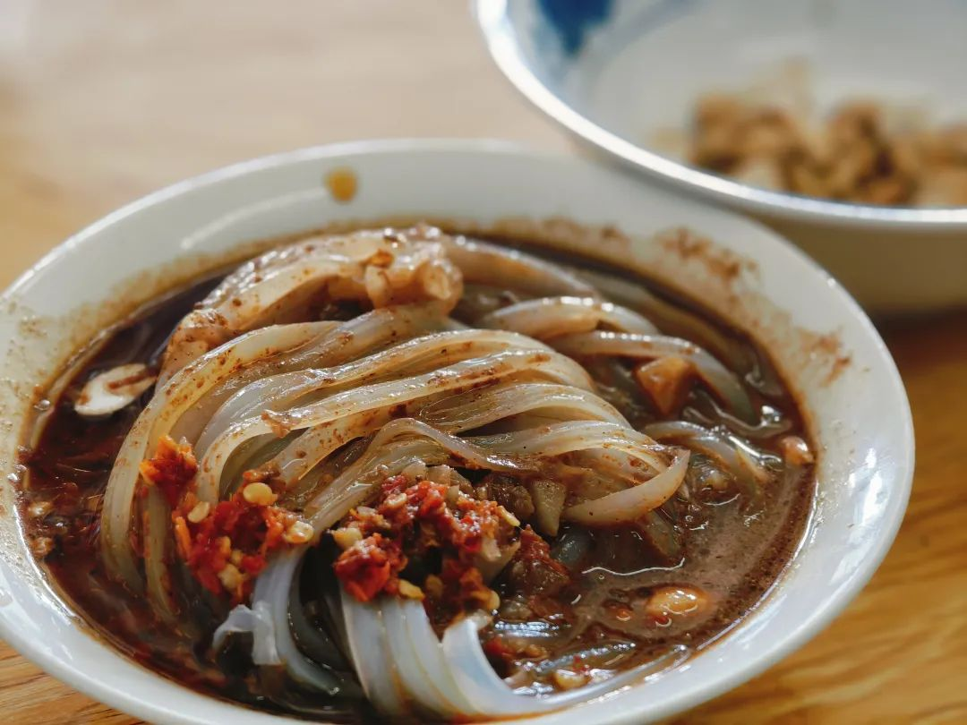 漯河涼粉的特色在于其獨特的工藝與風味。不少家庭作坊至今仍堅持古法:用石磨細細研磨新鮮豌豆,經(jīng)過浸泡、磨漿、沉淀、熬煮等多道工序,這樣做出的涼粉格外筋道爽滑。調(diào)味上,漯河人也頗有心得,融合南北特色,常加入本地特有的藿香葉、荊芥等香草,調(diào)出酸辣爽口的“沙澧風味”,與開封炒涼粉、靈寶一生涼粉等河南其他地方的涼粉風味區(qū)別開來,成為胡辣湯、燴面之外漯河飲食文化中不可或缺的一環(huán)。