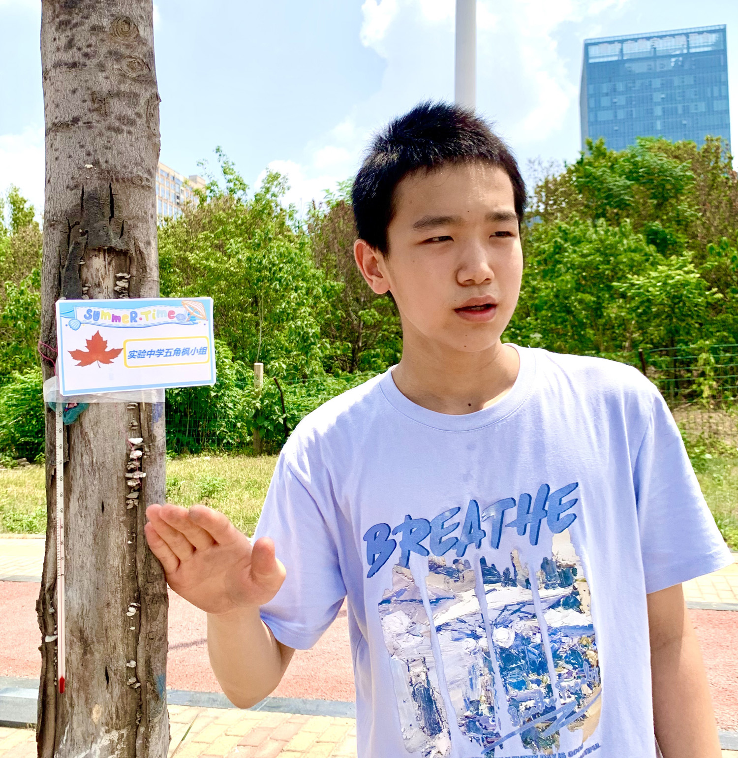 7月18日午時(shí),西城凌云山路,40℃的高溫炙烤著大地。在炎炎烈日下,兩個(gè)稚嫩的少年正蹲在一棵小樹前,手里拿著儀器,專注地觀察著什么。刺眼而毒辣的陽(yáng)光灑在他們的身上,他們卻仿佛感覺不到炎熱與不適。