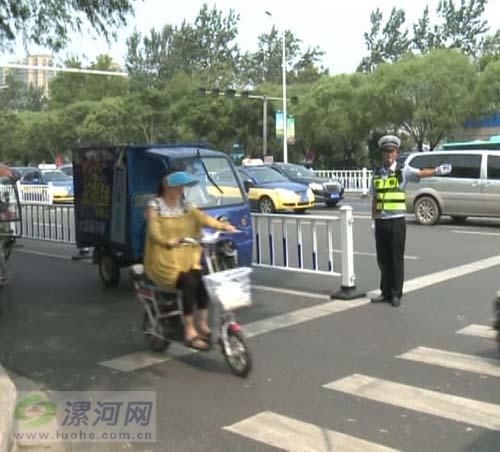 漯河市交警支隊(duì)交通秩序管理示范大隊(duì)交警李林鵬:我和同事張龍江巡邏到淞江路泰山路口,因?yàn)樘┥娇谑茄由鞃?,沒有設(shè)立崗?fù)ぃ?dāng)時(shí)過來的時(shí)候已經(jīng)停電了,所以紅綠燈不能用。