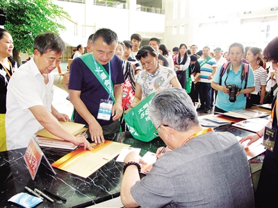 大家排隊(duì)購買郵票,并等待著名郵票設(shè)計家簽名。
