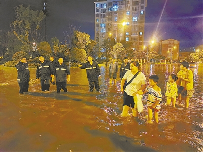 暴雨沖走窨井蓋 他們充當(dāng)警示牌