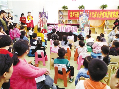 市圖書館的親子閱覽室里 志愿者表演的精彩手偶劇《小雞找媽媽》