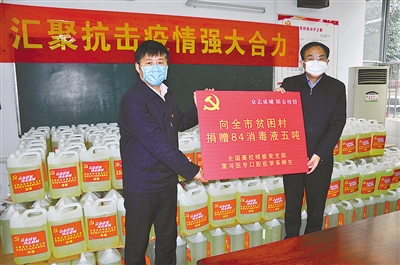 (記者 齊 放)2月6日,在漯河醫(yī)專,口腔醫(yī)學(xué)系學(xué)生黨支部把5噸84消毒液送到全市75個(gè)貧困村駐村第一書記代表手中。