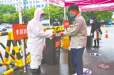 “媽媽再見,放心吧,我會(huì)照顧好自己的!”來自許昌的程佳寶同學(xué)到了學(xué)校門口后,和爸媽擁抱惜別,然后進(jìn)入測溫消毒防疫通道,進(jìn)行身份核驗(yàn)、體溫測量、行李消毒、更換口罩、手部消毒后,進(jìn)入闊別已久的校園。