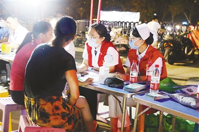 6月13日晚,漯河柳江醫(yī)院組織十多名醫(yī)護(hù)人員走進(jìn)市體育場(chǎng)夜間廣場(chǎng)消費(fèi)點(diǎn)開(kāi)展義診活動(dòng)。