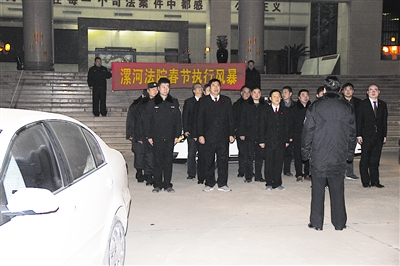 1月22日,天剛蒙蒙亮,市中級人民法院的執(zhí)行人員便到法院集合了。6點(diǎn)整,市中級人民法院辦公樓前,警燈閃爍,20名執(zhí)行干警整裝待發(fā)。簡短的儀式后,市中級人民法院“春節(jié)執(zhí)行風(fēng)暴”專項(xiàng)活動(dòng)拉開帷幕。在市中級人民法院黨組成員、執(zhí)行局長黨繼紅的統(tǒng)一指揮下,該院執(zhí)行局兵分兩路開始行動(dòng)。