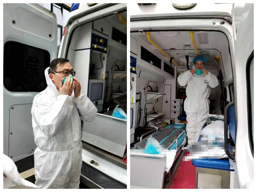 市二院醫(yī)療急救運轉(zhuǎn)隊是2月5號到達武漢,經(jīng)過兩天的緊張集訓,今天他們就要開始接到首次急救運轉(zhuǎn)任務(wù)。“第一次經(jīng)歷如此重大的戰(zhàn)斗,會緊張、有壓力。”市二院轉(zhuǎn)運醫(yī)療隊的隊員們深知,每一次轉(zhuǎn)送任務(wù)就是離危險更近一步,但沒有一個人打退堂鼓,大家相互鼓勵打氣,克服了許多難以想像的困難。執(zhí)行任務(wù),穿上密不透氣的防護服,一穿就是幾個小時,衣服濕了又干干了又濕。因為怕上廁所,不敢喝水,回來后要經(jīng)過嚴格的車輛和個人消毒處理,忙活完,大家累得都吃不下飯。