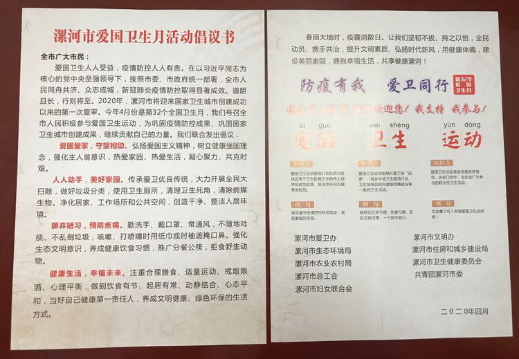 2020年4月是第32個愛國衛(wèi)生月,今年的活動主題是“防疫有我、愛衛(wèi)同行”。4月3日,郾城區(qū)沙北街道海河社區(qū)組織志愿者深入店鋪、小區(qū)中發(fā)放環(huán)境衛(wèi)生宣傳材料,并結(jié)合當(dāng)前新冠肺炎疫情向大家普及衛(wèi)生健康知識,號召大家共同行動起來,摒棄陋習(xí),養(yǎng)成良好的衛(wèi)生習(xí)慣。