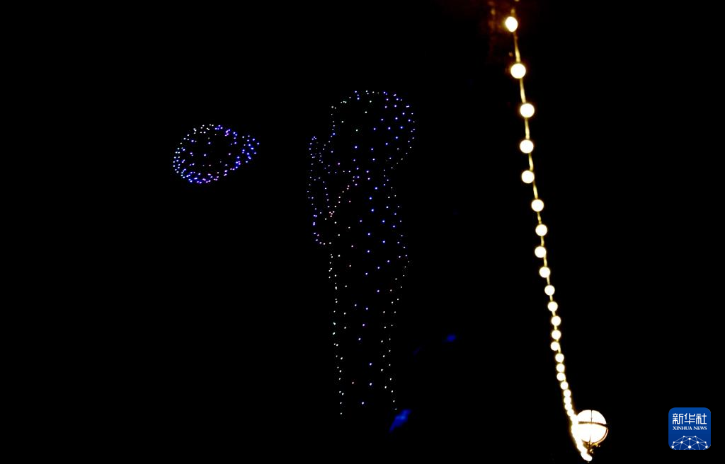 2024年1月1日凌晨,在英國倫敦舉行的新年慶?;顒由?,無人機組成的圖案出現(xiàn)在市中心上空。
