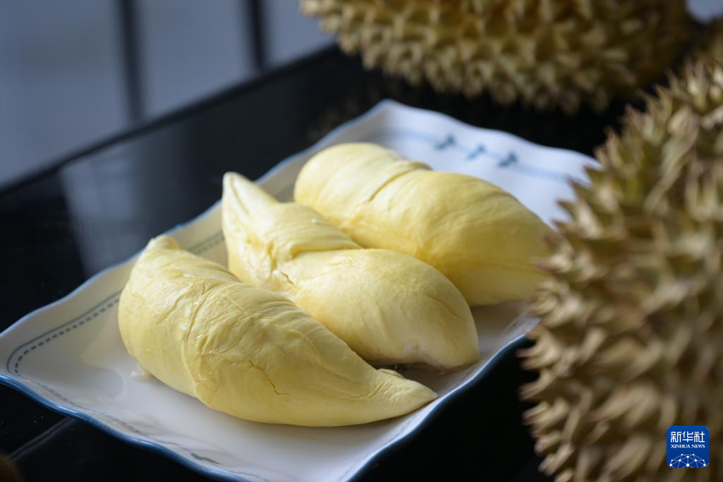 7月20日在海南省三亞市優(yōu)旗大嘴鳥(niǎo)榴蓮園一號(hào)基地拍攝的國(guó)產(chǎn)榴蓮果肉。