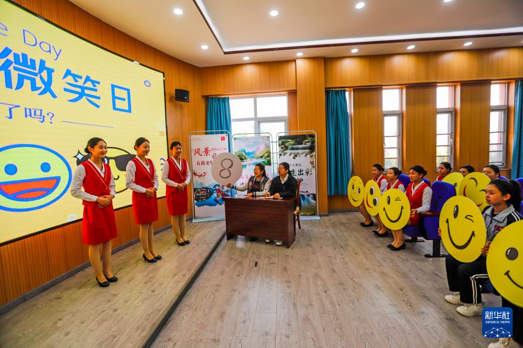 5月7日,河北省遵化市職教中心旅游專業(yè)的學生在參加微笑禮儀展示活動。